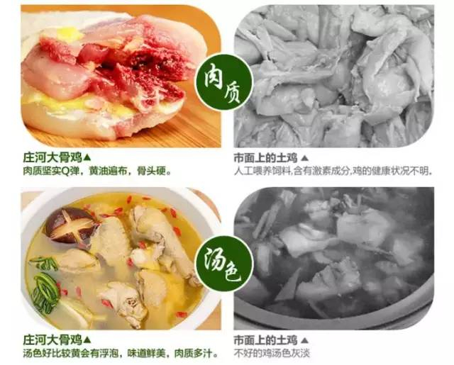 庄河大骨鸡肉质紧实Q弹,色泽鲜黄,骨头硬;煲汤后,味道鲜美,肉嫩多汁。