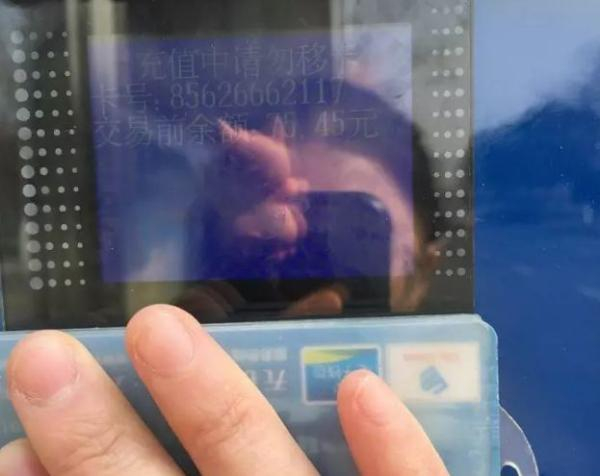 3、手机支付成功后,将交通卡紧贴电子牌右侧的“补登机感应区域”20秒左右,听到“充值成功”提示音即可。屏幕上将显示卡号、交易前余额、充值金额、交易后余额。