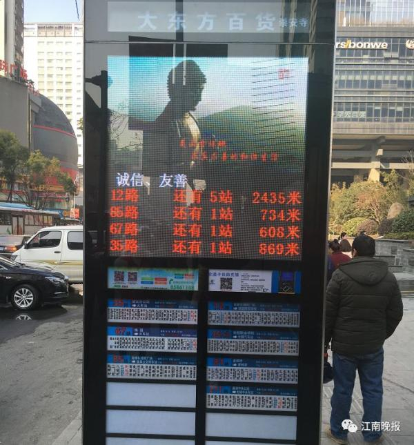 最近无锡不少公交车站的站牌焕然一新。清晰的电子大屏循环播放无锡宣传片,下面几行提供实时车辆到站预报信息。从市交通场站建设管理有限公司了解到,这是今年投运的首批新型公交电子站牌,也是无锡第三代公交电子站牌,不仅更加美观大气,还新增了给交通卡自助充值的功能。新型公交电子牌高约2.3米、宽约1.3米,如同一个放大版的黑色手机,相比一旁传统公交站牌的尺寸大了一倍左右。