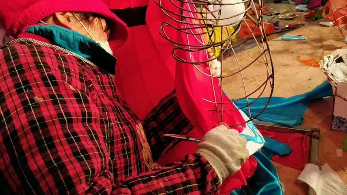 ▲花灯艺人正在制作灯彩