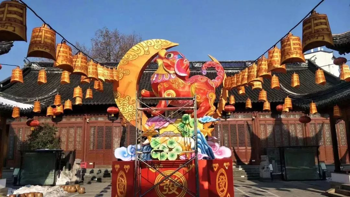 工人师傅们在紧锣密鼓地布置花灯