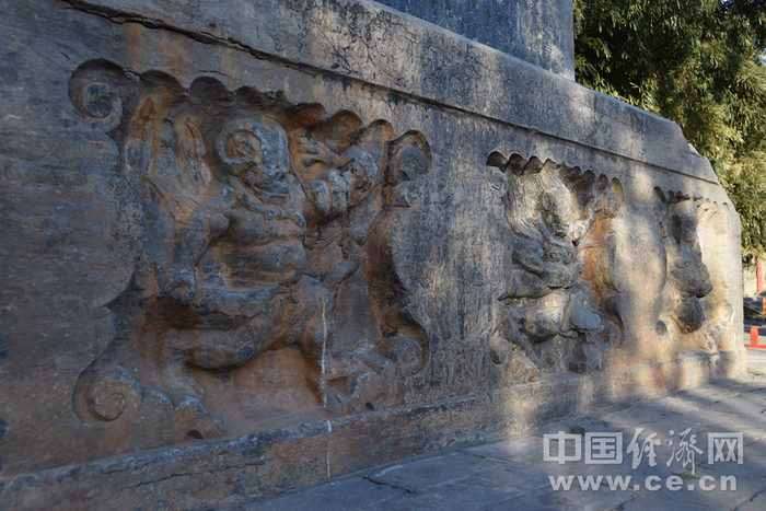大唐碑,全称为“大唐嵩阳观纪圣德盛应之颂碑”,唐天宝三年(公元744年)刻立,碑高9.02米,宽2.04米,厚1.05米,碑制宏大,雕刻精美,为河南省最大的石碑,被誉为“中原第一碑”。