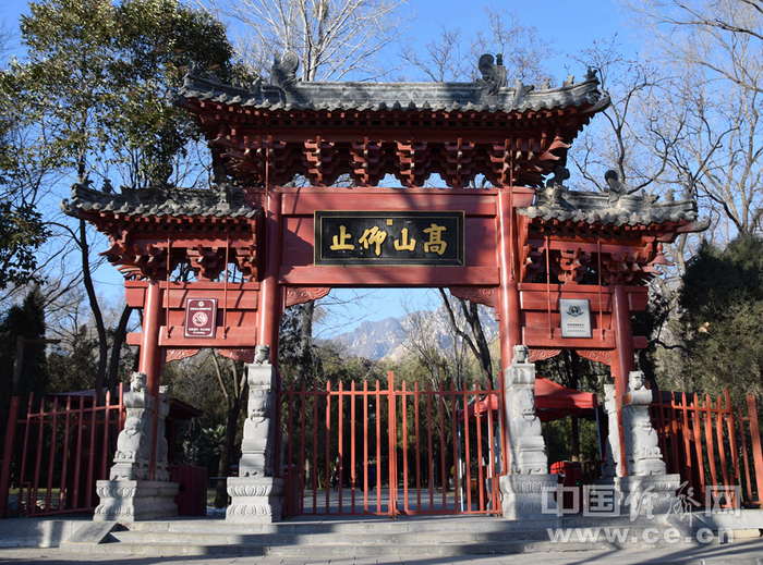 入口“高山仰止”坊,匾额为乾陵御笔。黑底金字,彰显了当年嵩阳书院的地位。