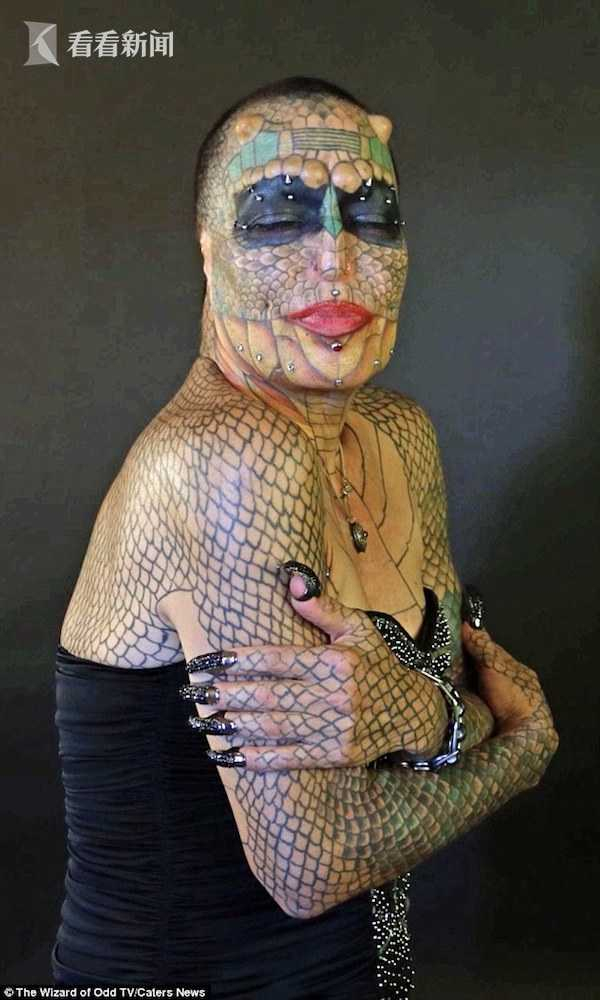 为了把自己变成非人类,她前后花了6万美元,然而她打算再花4万美元完成进一步“变形”。“我觉得自己不再仅仅是人类,我现在既是人类也是爬行动物,我最大的愿望就是继续整形,直到变形彻底完成的那天。”她说道。