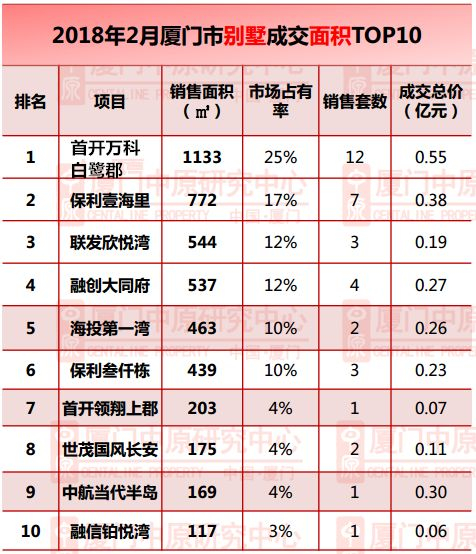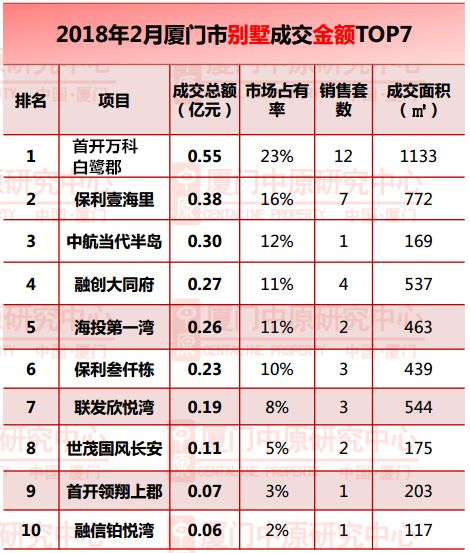 看看厦门2月份的别墅成交情况