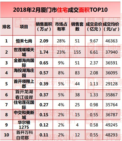 看看厦门2月楼市成交数据
