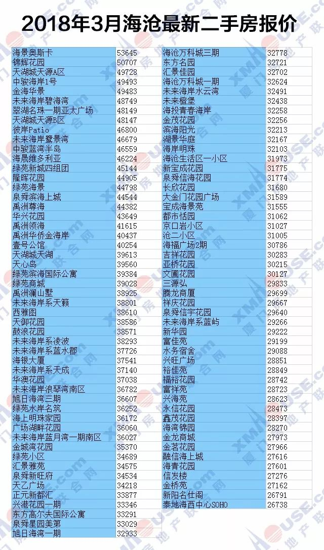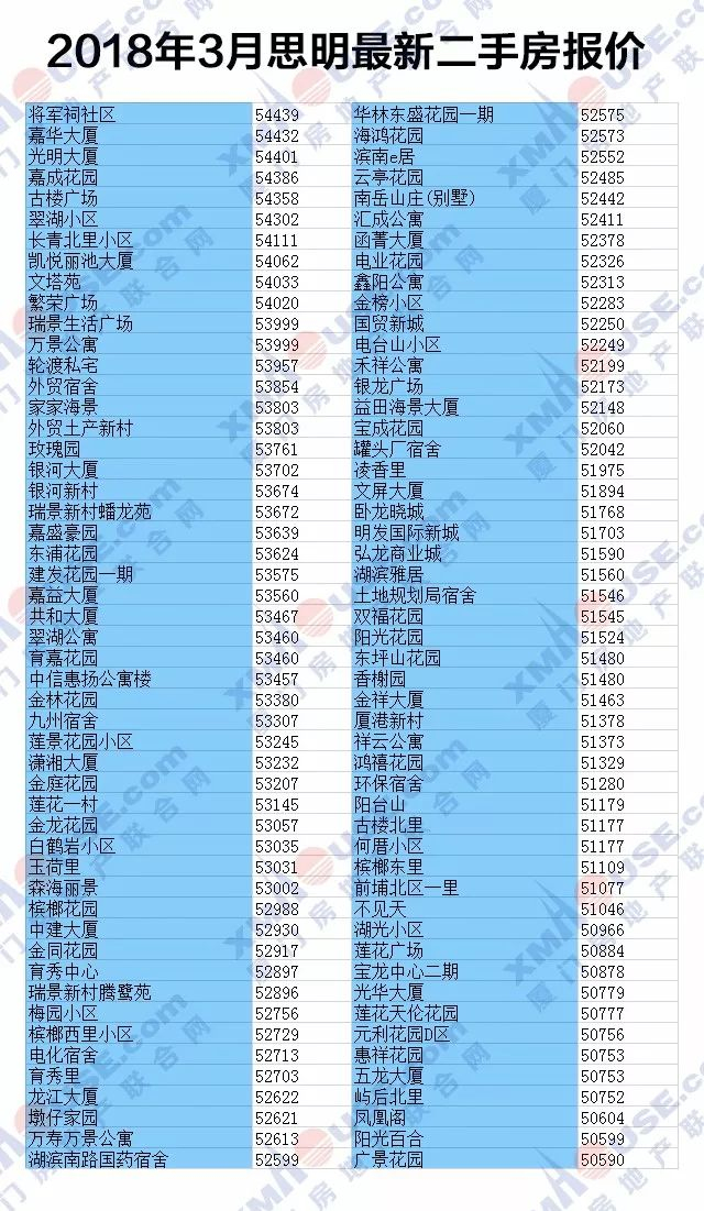 厦门二手房价最新曝光——