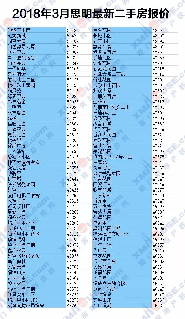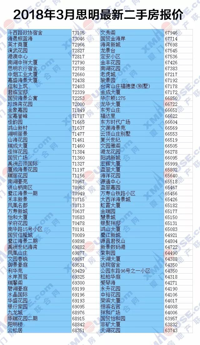 043月厦门1300个小区二手房价曝光赶紧看看你家房子还值多少钱?