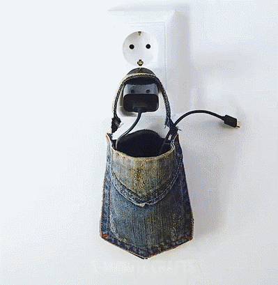牛仔裤口袋剪一剪,轻松解决这个问题。把牛仔裤的口袋剪下来,然后留一下一小块当作挂绳。
