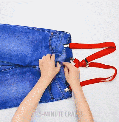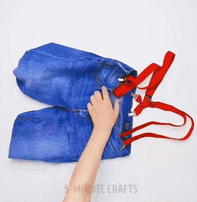 ?/ 牛仔背带包 /?牛仔裤改换成背带包是最经典的改造,只需要一根绳子,牛仔裤就能秒变背包,容量和质量齐飞。