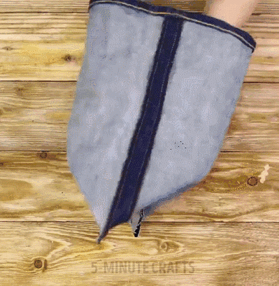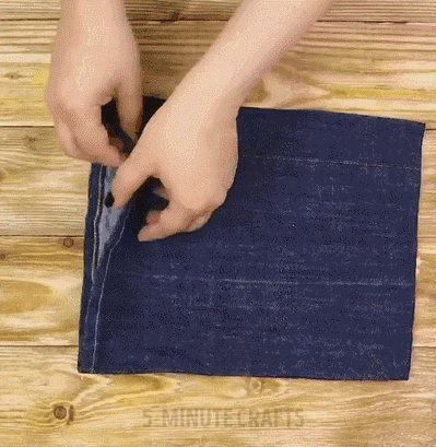 将两个角依次缝住,再将牛仔裤筒翻转回正常的状态,一个简单的小收纳袋就完成啦!