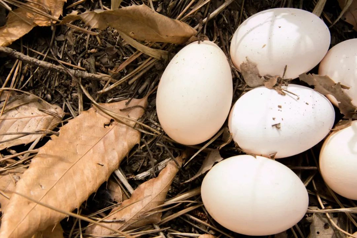 丛林里、山沟里随处可见鸡蛋,工人每天从早到晚逡巡在山岭中,一边侍弄果树,一边不停地捡拾鸡蛋。