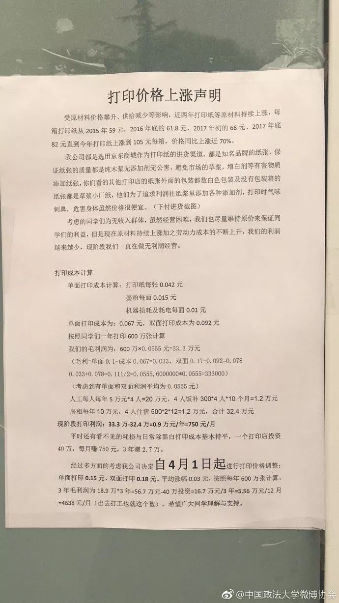 “涨3分钱都要写个论文”,高校打印店写涨价声明,服不服?