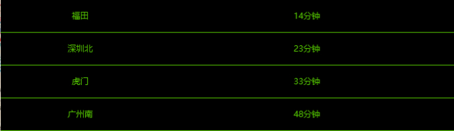 按广深港高铁香港段的设计速度200千米每小时计算,理论上,如果一位乘客从厦门北站出发,到达香港的西九龙可能耗时不到4小时;而从湖北武汉到香港也只需要4个半小时左右,湖南长沙至香港车程仅为3个半小时左右。