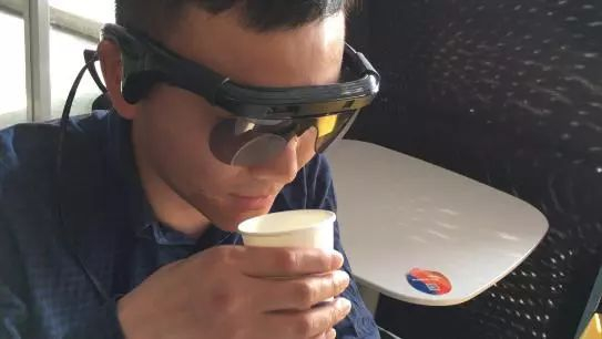 这副眼镜的“学名”叫“盲人视觉辅助眼镜”,简单来说就是通过摄像头搜集周边信息,再转化成音频信号,告诉佩戴者身边的情况。