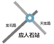 宝石路、应人石路与天宝路交会处附近,规划为远期换乘站。应人石社区是石岩街道的南大门,附近聚集了石景花园、应人石新村、玉山公寓等住宅小区,以及应人石市场、应人石育才学校等配套设施。