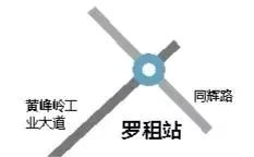 黄峰岭工业大道与同辉路交会处附近。站点南侧以工业区为主,北侧以居民区为主。附近聚集了罗租社区工作站、罗租社区居委会、罗租幼儿园、育蕾幼儿园、宁远实验学校等基础设施以及罗租桥头岭二区、艾美特等生活生产区。