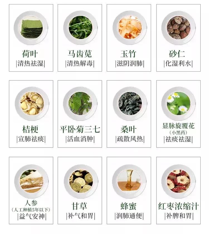 3,蒲公英,菊苣,金银花,荷叶,马齿苋:这5位药材是上策膏另外一个重要的组成.湿气在外会有很多表症,如皮肤油腻,口干口苦,嗓子干痒,长痘,湿疹,等等。而这5味药能全面消除湿气引发的嗓子发痒,口干,口苦 ,口渴,全身肌肉关节痛 ,头晕头痛,皮肤油光,满脸起痘,大便糖稀而肛门涩痒,皮肤湿疹等等表症,而且常常几天就见效。