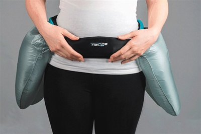 据报道,这款腰带配备两个安全气囊,佩戴在髋骨上方,能够在屁股上方充气来吸收撞击力。Helite公司称,人类摔倒所需要的平均时间为0.4秒,而这款腰带能够在0.2秒内感知摔倒的状态,只需要80毫秒就能充满气。