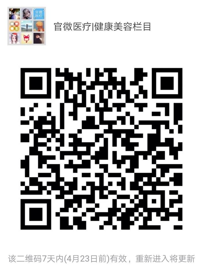 二维码失效迷路的小伙伴们,可添加“官微医疗小助手”微信,长按图片识别二维码进行添加,通过小助手加入健康美容栏目群。