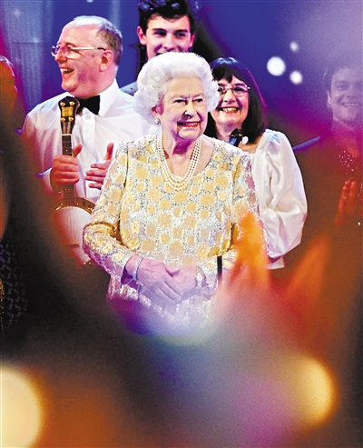 当地时间21日,英女王出席庆生演唱会。 @视觉中国