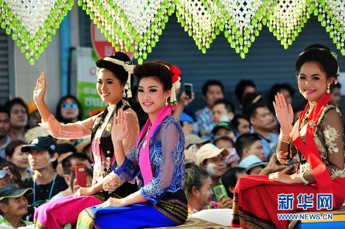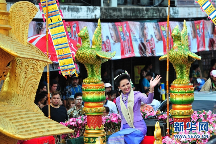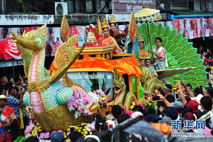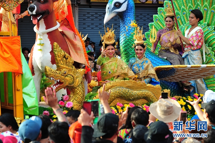 原标题:泰国沙没巴干府花车游行欢庆泼水节