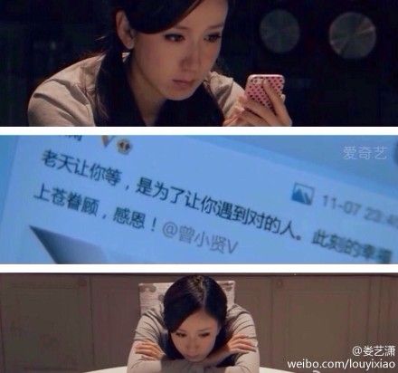 飞鸟游鱼小屋:《爱情公寓》看到胡一菲守着一盘冷了的蛋炒饭和手机那一幕时,突然有些心酸,女汉子再汉子也终归是女生,也有她脆弱和孤单的时候。也许外表所谓强势的伪装也只是证明她更敏感更脆弱的内心罢了!
