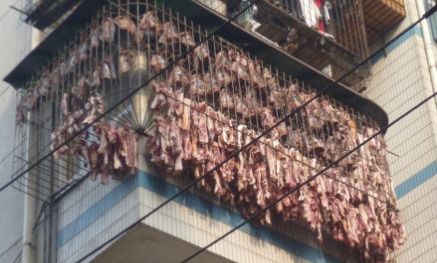 有武汉网友近日路过光谷鲁磨路时,无意看到一居民家的阳台外防盗网上,密密麻麻晒的全是腊肉,小伙伴们都被惊呆了!有网友笑言“得杀多少头猪啊,这才是民间真土豪啊!据了解,这些腊肉是楼下餐厅杀了20头猪,制成的腊肉四千多斤!