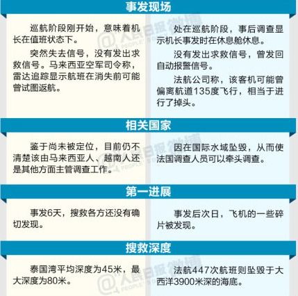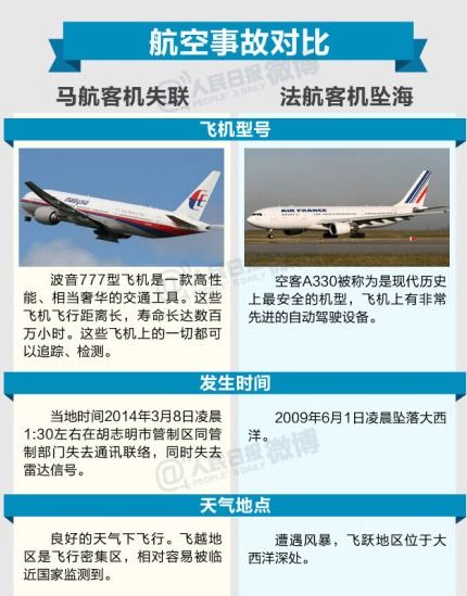 今天,#马航客机失联#进入第六天。这次失联十分罕见,让许多人想起法航447航班的搜救。法航447航班事故发生6天后,一批飞机遗骸被找到。看一下两起事故的对比。