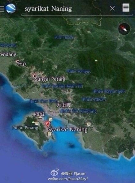 马航飞机失联事件越发扑朔迷离。3月8号09:53分,也就是飞机失联后六小时,亚航CEO Tony Fernandes就发推特说飞机在Naning,但随后不久该推即被删除。之后有网友通过谷歌地图在马六甲海域真的发现了一个叫Naning的小岛,而岛上居然还有一个不起眼的机场,叫滨城国际机场,而副机师恰好是滨城人。