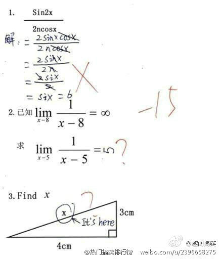 这个学生太有才了。特别是第三题,当时我就笑喷了。