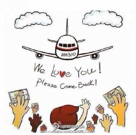 多希望如电影桥段那般:在某个风和日丽的清晨,北京上空出现一架老式波音777飞机,经确认飞机上的乘客就是失联的MH370,上面的239人仍是当时年轻的模样,他们表示离开马来西亚只是几个小时之前的事。。“天又黑了,你们到底去哪儿了?请别再玩捉迷藏,这样一点都不酷。(via. 小小志kimi粉丝童乐会)