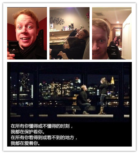 国外一位哥们在向女友求婚前的一段日子里,不断地拿着戒指在女友不发现的情况下,进行大量的自拍。这些照片中,每张都有他的女友当做背景,即便在一次看电视的时候,他把戒指拿到未婚妻头上的自拍,女友也浑然没有察觉。直到,当最后这一幕发生的时候.。ps. 女友十分感动,然后拒绝了他。(via. 口十茶)
