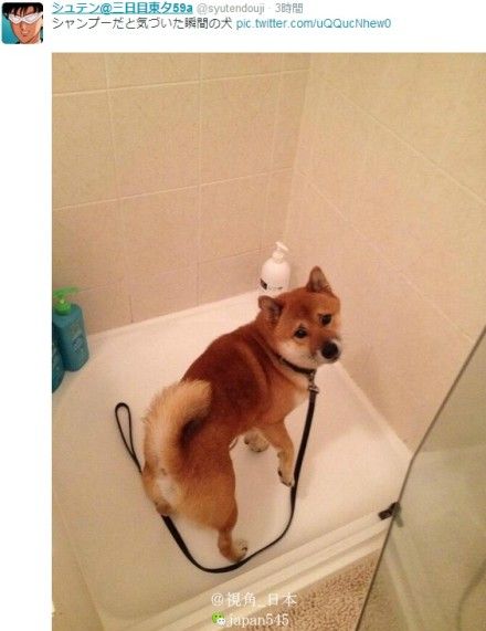 生活:意识到接下去不是散步而是洗澡的柴犬。