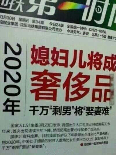 妹子别急,只是时间问题。2020年,媳妇儿将成奢侈品…