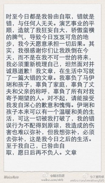 看完文章的致歉书,翻译出他想说的三句话:1、我真的出轨了。2、我以前都在装逼。3、大家给条活路。(via. 南京头条)
