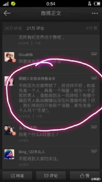 东窗事发。文章发微博道歉,人们会夸他有担当,浪子回头金不换;马司令发微博回应,人们会夸她有肚量,大奶智斗恶小三。唯独可怜我@姚笛,到现在也不敢做任何回应,因为她无论做任何回应在人们心目中她都是勾引有妇之夫的小三。爱情里,男人贱,女人傻,又能说的准谁对谁错了?(via. JuiceSH)