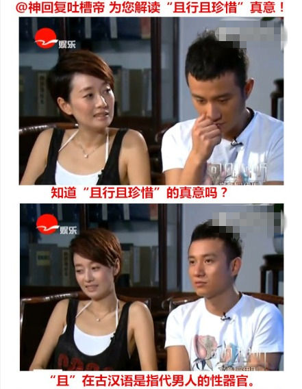 专家解读“且行且珍惜”:“且”在古汉语是指代男人的性器官。所以“且行且珍惜”译成白话就是:你的屌再行,也得省着用。——这是妻子对出轨丈夫最深情最有效的一句劝慰。