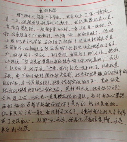 一篇心理课上的作文,出现的神作!屌丝与富二代的博弈,感动2014!人生简直太残酷了。