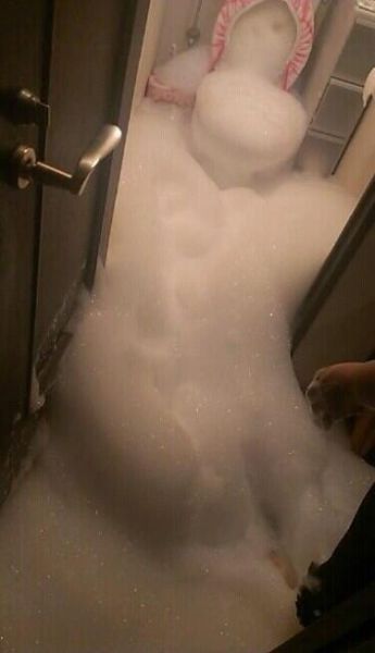 日推一网友家里的熊孩子说要帮爸爸洗厕所。。。。。结果回来一看厕所就变成这样了。