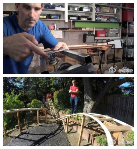 美国一位父亲,为了逗儿子开心,也为了完成自己儿时的梦想,花了三千美元,在自家后院为儿子做了个云…霄…飞…车…?(via. 卤吸吸)