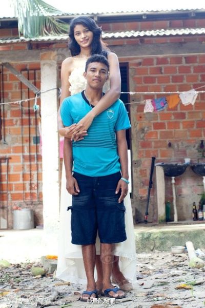 身高不是距离。女高男矮版的#最萌身高差#!在巴西萨利诺波利斯,身高1.6米的男子在沙滩上向女友Elisany Silva求婚。据悉,Elisany今年17岁,身高已达到两米。祝福他们吧!