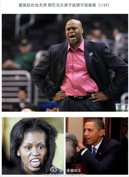 昨晚, 奥巴马的老婆--米歇尔狠狠发了一通火。原来, 米歇尔的哥哥被俄勒冈大学炒鱿鱼了, 米歇尔当然要发火。大舅子既然是大学的篮球教练, 奥巴马就应该早些到那个大学去视察, 当着校领导的面, 接见一下大舅子, 再给学校题个词什么的, 不用你说, 大舅子也早当上俄勒冈州体育局长了。这么笨, 活该挨骂!(via. 作家崔成浩)