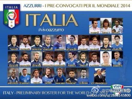 意大利世界杯大名单:迪亚曼蒂落选。北京时间5月14日凌晨,意大利主帅普兰德利公布了巴西世界杯大名单,恒大球星迪亚曼蒂遗憾落选。AC米兰有巴洛特利等4人入选,意甲冠军尤文有布冯、皮尔洛等6人进入大名单,而国米只有后卫拉诺基亚入选。