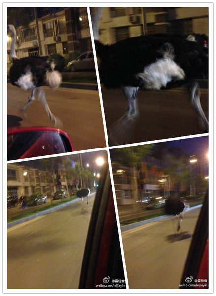 泥马,北京就不一样,大街上跑鸵鸟。(via. @雷佳音)