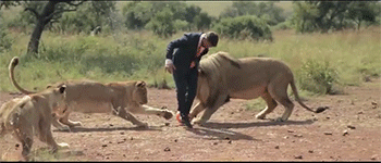 和狮子一起踢足球的男人。动物学家Kevin Richardson跟狮子生活了好几年,被狮子接受入群体,现在算是地球上跟野生狮子最亲近的人类,他们甚至会一起玩游戏。。。这让那些连自家的猫都还没接受的人情何以堪。(via. 别开枪我是邪恶君)