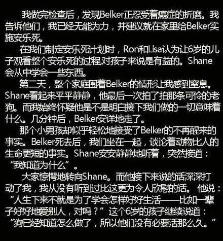 汤不热上一名兽医分享的一个故事:为什么狗活的比人要短——一个六岁男孩 给我们的答案。这是我听过的关于生命最美好的解释。(via. 当时我就震惊了)