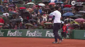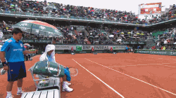 法网,小德的比赛被下雨暂停。 他邀请球童来跟他一起坐下。。给他玩拍子还一起喝饮料聊天。。超欢乐的场面啊。。。。 (旁边裁判都忍不住了.... )(via. 英国那些事儿)