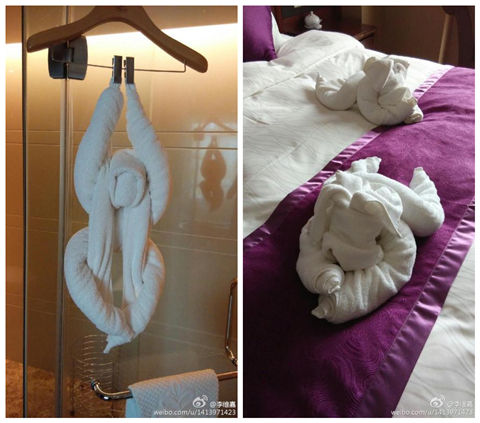 浴巾叠成这样也是可爱的!吼吼!(via. 李维嘉)