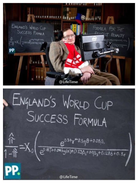 英国科学家霍金给出的英格兰夺冠公式。谁信?(via. LifeTime)